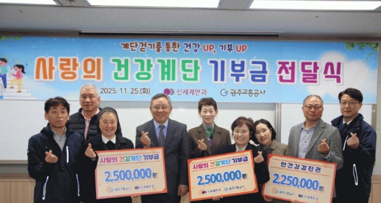 ±¤ÁÖ±³Åë°ø»ç´Â ÃÖ±Ù ¼±¸ ¸¶¸¤µ¿ º»»ç¿¡¼ ½Å¼¼°è¾È°ú¿Í ÇÔ²² ¡®»ç¶ûÀÇ °Ç°°è´Ü¡¯ ±âºÎ±Ý Àü´Þ½ÄÀ» °³ÃÖÇϰí, ÈÄ¿ø±Ý 5¹é¸¸¿ø°ú 225¸¸¿ø »ó´çÀÇ ¾È(äÑ)°Ç°°ËÁø±ÇÀ» ¡ãÁñ°Å¿î³ëÀÎÁÖ°£º¸È£¼¾ÅÍ ¡ã±¤ÁÖÀÌÁÖ¿©¼ºÁö¿ø¼¾ÅÍ ¡ã³ëƲ´ãÇüÁ¦ÀÇÁý¿¡ Àü´ÞÇß´Ù. ½Å¼¼°è¾È°úÀÇ ÈÄ¿øÀ¸·Î ¿î¿µµÇ¡¦