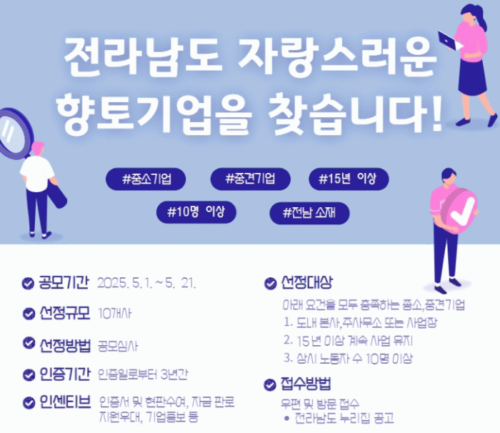 Âü¿©¸¦ ¹Ù¶ó´Â ±â¾÷Àº Àü³²µµ ´©¸®Áý °í½Ã¡¤°ø°í¶õ¿¡¼ ¡®2025³â Àü¶ó³²µµ ÀÚ¶û½º·¯¿î ÇâÅä±â¾÷ Âü¿©±â¾÷ ¸ðÁý¡¯ °ø°í¹®À» È®ÀÎÇÑ ÈÄ, ½Åû¼¸¦ ÀÛ¼ºÇØ Á¦ÃâÇÏ¸é µÈ´Ù.
