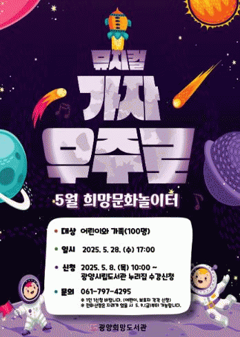 À̹ø °ø¿¬Àº ¾î¸°ÀÌ¿Í °¡Á· ´©±¸³ª ¹«·á·Î °ü¶÷ÇÒ ¼ö ÀÖÀ¸¸ç, Âü¿©¸¦ ¿øÇÏ´Â ½Ã¹ÎÀº 5¿ù 8ÀÏ ¿ÀÀü 10½ÃºÎÅÍ ±¤¾ç½Ã¸³µµ¼°ü ´©¸®ÁýÀ» ÅëÇØ ½ÅûÇÏ¸é µÈ´Ù.
