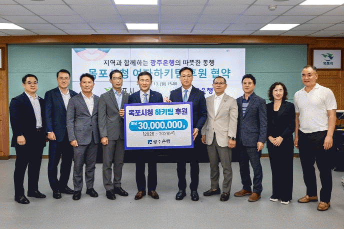 ±¤ÁÖÀºÇàÀº Áö³­ 13ÀÏ ¸ñÆ÷½Ãû¿¡¼­ ¿­¸° Çù¾à½Ä¿¡¼­ °íº´ÀÏ ±¤ÁÖÀºÇàÀå°ú Á¶¼®ÈÆ ¸ñÆ÷½ÃÀå ±ÇÇÑ´ëÇà(ºÎ½ÃÀå), °í¿µ¹è °ü±¤¹®È­±³À°±¹Àå(Á÷Àå¿îµ¿°æ±âºÎ ´ÜÀå) µî °ü°èÀÚµéÀÌ Âü¼®ÇÑ °¡¿îµ¥, ¸ñÆ÷½Ãû Á÷Àå¿îµ¿°æ±âºÎ ¿©ÀÚÇÏŰÆÀ °ø½Ä ÈÄ¿ø Çù¾àÀ» ü°áÇß´Ù°í ¹àÇû´Ù.