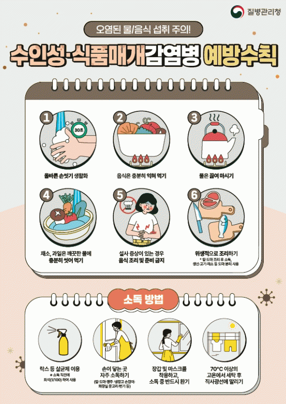 ¿À¿°µÈ ¹°¡¤À½½Ä ¼·Ãë ÁÖÀǸ¦ Á¦¸ñÀ¸·Î ÇÑ ¿¹¹æ¼öÄ¢Àº ¡â¿Ã¹Ù¸¥ ¼Õ ¾Ä±â »ýÈ°È ¡âÀ½½ÄÀº ÃæºÐÈ÷ ÀÍÇô ¸Ô±â ¡â¹°Àº ²ú¿© ¸¶½Ã±â ¡âä¼Ò¡¤°úÀÏÀº ±ú²ýÇÑ ¹°¿¡ ÃæºÐÈ÷ ¾Ä¾î ¸Ô±â ¡â¼³»ç Áõ»óÀÌ ÀÖ´Â °æ¿ì À½½Ä Á¶¸® ¹× Áغñ ±ÝÁö ¡âÀ§»ýÀûÀ¸·Î Á¶¸®Çϱâ·Î ±¸¼ºµÅ ÀÖ´Ù.