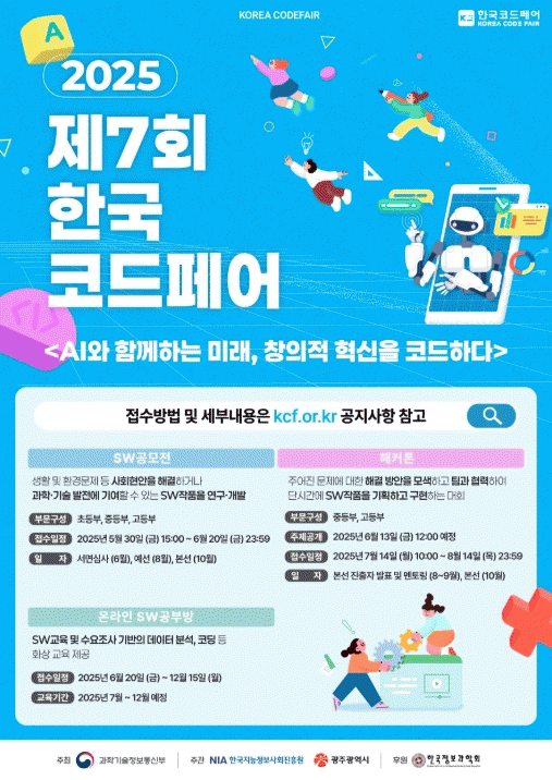 ´ëȸ´Â ¡ã»çȸ Çö¾È ¹× ½Ç»ýȰ ¹®Á¦¸¦ âÀÇÀûÀ¸·Î ÇØ°áÇϱâ À§ÇØ ¼ÒÇÁÆ®¿þ¾î·Î ÀÛǰÀ» ±¸ÇöÇÏ´Â ¡®¼ÒÇÁÆ®¿þ¾î °ø¸ðÀü¡¯ ¡ãÁ¦½ÃµÈ ¹®Á¦¿¡ ´ëÇØ ÇØ°á ¹æ¾ÈÀ» ¹ßÇ¥ÇÏ´Â ¡®ÇØÄ¿Å桯 ¡ã¼ÒÇÁÆ®¿þ¾î¡¤¾Ë°í¸®ÁòÀ» ÇнÀÇÏ´Â ¡®¿Â¶óÀÎ ¼ÒÇÁÆ®¿þ¾î °øºÎ¹æ¡¯ µî 3°³ ÇÁ·Î±×·¥À¸·Î ÁøÇàµÈ´Ù.