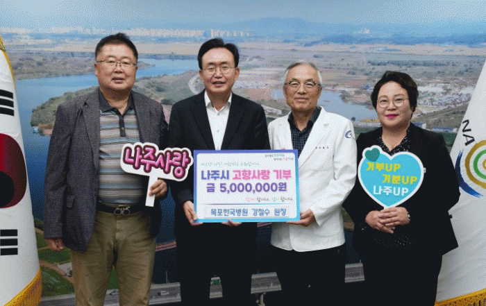 Àü¶ó³²µµ ³ªÁֽô 22ÀÏ ¸ñÆ÷Çѱ¹º´¿ø °­Ã¶¼ö ¿øÀå(¿À¸¥ÂÊ µÎ ¹øÂ°)ÀÌ Áö¿ª»çȸ ¹ßÀüÀ» À§ÇØ °íÇâ»ç¶û±âºÎ±Ý 500¸¸ ¿øÀ» ±âŹÇß´Ù°í ¹àÇû´Ù.