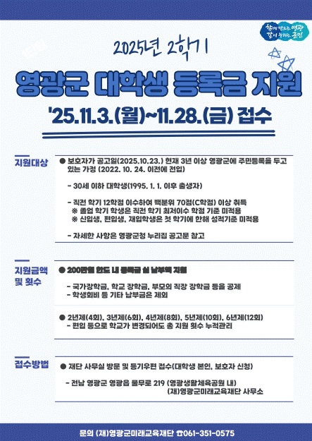 (Àç)¿µ±¤±º¹Ì·¡±³À°Àç´Ü, 2025³â 2Çб⠴ëÇлý µî·Ï±Ý Áö¿ø»ç¾÷ °ø°í