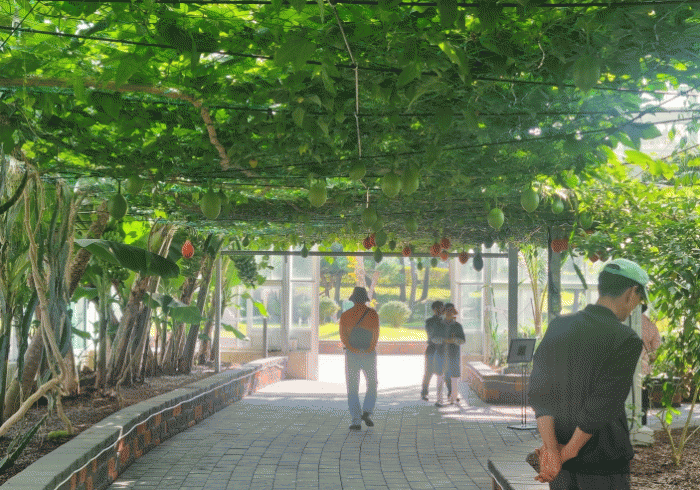 ÀÔ±¸¿¡´Â ¡®°Æ(°Ô¿í)¡¯À̶ó ºÒ¸®´Â Èñ±Í ¿­´ë°úÀÏÀ» Ȱ¿ëÇÑ ÅͳÎÇü Á¶Çü¹°ÀÌ Á¶¼ºµÅ ¹æ¹®°´µéÀÇ ½Ã¼±À» »ç·ÎÀâ°í, ³»ºÎ¿¡´Â º° ¸ð¾çÀÇ ½ºÅ¸Èĸ£Ã÷, ÆÄÆÄ¾ß, ¹Ì´Ï ÆÄÀξÖÇÃ, ¹Ù³ª³ª ³ª¹« µîÀÌ ¾î¿ì·¯Áø ¿­´ë Á¤¿ø °°Àº dz°æÀÌ ÆîÃÄÁø´Ù.
