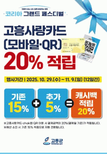 °íÈﱺ, Àü±¹ ¼Òºñ ÃàÁ¦ ±â°£ ¸ð¹ÙÀÏ °íÈï»ç¶û»óǰ±Ç 20% Àû¸³