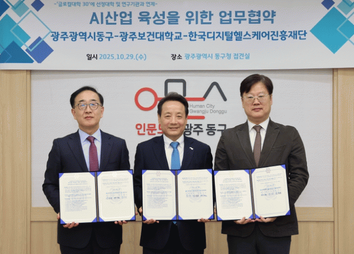 ±¤ÁÖ µ¿±¸´Â Áö³­ 29ÀÏ ±¸Ã» Á¢°ß½Ç¿¡¼­ ±¤ÁÖº¸°Ç´ëÇб³(ÃÑÀå ±è°æÅÂ), Çѱ¹µðÁöÅÐÇコÄɾîÁøÈïÀç´Ü(¿øÀå ¹Ú±â¿ø)°ú ÀΰøÁö´É(AI) ÇコÄÉ¾î »ê¾÷ À°¼º, Àα¸ °¨¼Ò ÇØ°á, ¿øµµ½É Ȱ¼ºÈ­¸¦ À§ÇÑ ¾÷¹«Çù¾àÀ» ü°áÇß´Ù°í ¹àÇû´Ù.