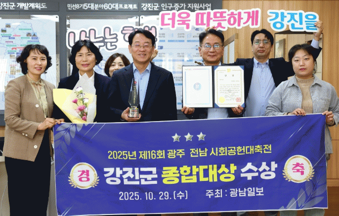 ±¤ÁÖ?Àü³² »çȸ°øÇå´ëÃàÀüÀº Áö¿ª»çȸ ¹ßÀü°ú ³ª´® ¹®È È®»ê¿¡ ±â¿©ÇÑ ±â°ü¡¤´Üü¡¤±â¾÷À» ¹ß±¼¡¤½Ã»óÇϱâ À§ÇØ ¸¶·ÃµÈ Çà»ç·Î, °Áø±ºÀº ÁֹΠÂü¿©Çü º¹ÁöÁ¤Ã¥°ú Áö¼Ó°¡´ÉÇÑ »çȸ°øÇå Ȱµ¿À» ÆîÄ£ Á¡¿¡¼ ³ôÀº Æò°¡¸¦ ¹Þ¾Ò´Ù.