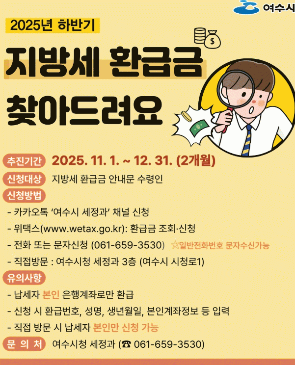 ¿©¼ö½Ã ¡®2025³â ÇϹݱâ Áö¹æ¼¼ ȯ±Þ±Ý ã¾ÆÁÖ±â ÃßÁø±â°£¡¯ È«º¸ Æ÷½ºÅÍ