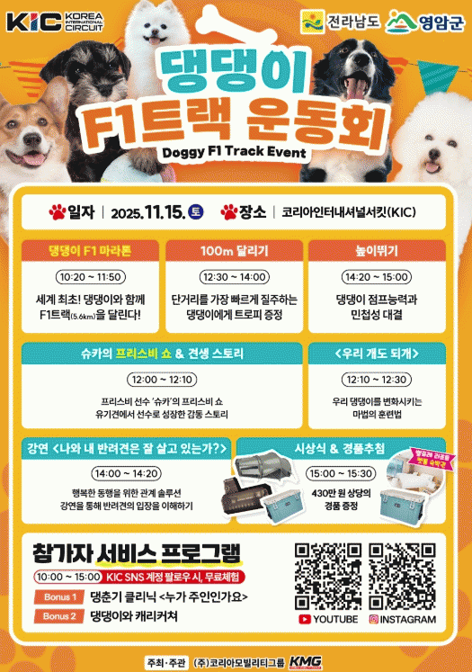 ¶ÇÇÑ ¹Ý·Á°ß°ú ÇÔ²² Âü¿©ÇÒ ¼ö ÀÖ´Â 100¹ÌÅÍ ´Þ¸®±â¿Í ³ôÀ̶ٱ⠴ëȸ°¡ ¿¸®¸ç, À̺¥Æ® ¿ì½ÂÀÚ¿¡°Ô´Â ´Ù¾çÇÑ ¹Ý·Á¿ëǰ°ú »óǰÀÌ ÁõÁ¤µÈ´Ù.