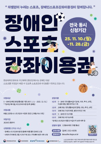 Àå¾ÖÀÎ ½ºÆ÷Ã÷°ÁÂÀÌ¿ë±Ç Áö¿ø ´ë»óÀº ¸¸ 5~69¼¼ µî·ÏÀå¾ÖÀÎÀÌ¸ç ½ÅûÀº Àå¾ÖÀÎ ½ºÆ÷Ã÷°ÁÂÀÌ¿ë±Ç ´©¸®Áý ¶Ç´Â À¾¡¤¸é¡¤µ¿ ÇàÁ¤º¹Áö¼¾ÅÍ¿¡¼ ÇÏ¸é µÈ´Ù.