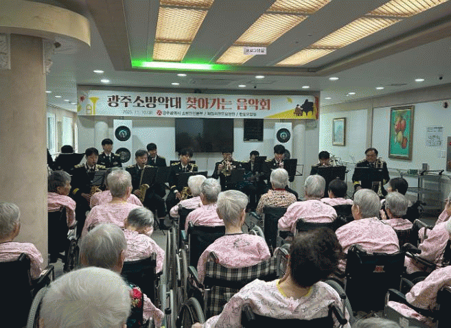 À̳¯ °ø¿¬¿¡¼ ±¤ÁÖ¼Ò¹æ¾Ç´ë¿øµéÀº 50¿©¸íÀÇ ¾î¸£½ÅµéÀ» À§ÇØ Å¬¶ó¸®³Ý¡¤ÇÃ·çÆ®¡¤»ö¼ÒÆù¡¤º£À̽º µîÀ¸·Î ±¸¼ºµÈ ¾Ó»óºí ¹«´ë¸¦ ²Ù¸ç ÃÑ 9°îÀ» ¿¬ÁÖÇß´Ù.