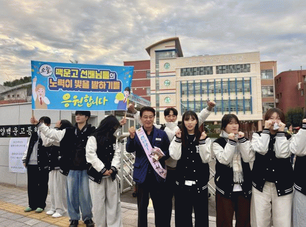 ±èÅÂ±Õ ÀÇÀåÀº ±¤¾ç±³À°Áö¿øÃ» °ü°èÀÚµé°ú ÇÔ²² ±³¹® ¾Õ¿¡¼ ¼öÇè»ýµéÀ» ÀÀ¿øÇϱâ À§ÇØ ÇÔ²² ³ª¿Â Çкθðµé°ú Çб³ °ü°èÀڵ鵵 °Ý·ÁÇß´Ù.