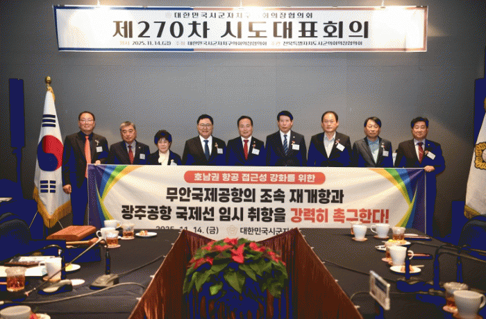 ±è¸í¼ö ±¤ÁÖ ±¤»ê±¸ÀÇȸ ÀÇÀå(´õºÒ¾î¹ÎÁÖ´ç, ½ÅÈﵿ¡¤¿ì»êµ¿¡¤¿ù°î1¡¤2µ¿¡¤¿î³²µ¿)ÀÌ 14ÀÏ ÀüÁÖ ¶óÇÑÈ£ÅÚ¿¡¼­ ¿­¸° ´ëÇѹα¹½Ã±ºÀÚÄ¡±¸ÀÇȸÀÇÀåÇùÀÇȸ Á¦270Â÷ ½Ãµµ´ëǥȸÀÇ¿¡ Âü¼®ÇØ ¡®¹«¾È°øÇ× Á¶¼Ó Àç°³Ç× ¹× ±¤ÁÖ°øÇ× ±¹Á¦¼± Àӽà ÃëÇ× Ã˱¸ °ÇÀǾȡ¯À» Á¦¾ÈÇß´Ù.