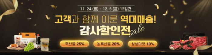 Àü ǰ¸ñ 20% ÇÒÀÎ ÄíÆùÀ» ȸ¿ø´ç 5¸Å¾¿ Áö±ÞÇϸç, Ãà»ê¹° ¡®³» »ç¶û °í±â¡¯ Äڳʸ¦ ÅëÇØ 5% Ãß°¡ ÇÒÀÎÇÏ´Â µî ÀϺΠǰ¸ñÀº Æò»ó½Ãº¸´Ù ÃÖ¼Ò 25% ÀÌ»ó Àú·ÅÇÏ°Ô ±¸¸ÅÇÒ ¼ö ÀÖ´Ù.