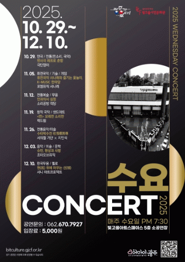 ±¤ÁÖ¹®È­Àç´ÜÀº ¿À´Â 12¿ù 3Àϰú 12¿ù 10ÀÏ ¼ö¿äÀÏ Àú³á 7½Ã 30ºÐ, ºû°íÀ»¾ÆÆ®½ºÆäÀ̽º 5Ãþ ¼Ò°ø¿¬Àå¿¡¼­ 12¿ùÀÇ ¡®¼ö¿äÄܼ­Æ®¡¯¸¦ °³ÃÖÇÑ´Ù°í ¹àÇû´Ù.
