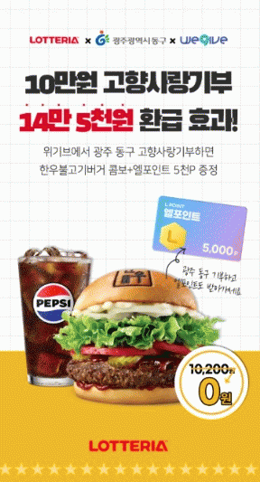 ±¤ÁÖ µ¿±¸¿¡ 10¸¸ ¿øÀ» ±âºÎÇÑ Âü¿©ÀÚ´Â ¡ã10¸¸ ¿ø ¿¬¸»Á¤»ê 100% ¼¼¾×°øÁ¦ ¡ã±¤ÁÖ µ¿±¸ ´ä·Êǰ(±âºÎ¾×ÀÇ 30% Çѵµ) Á¦°ø ¿Ü¿¡µµ, ·Ôµ¥¸®¾Æ ¡®ÇÑ¿ì ºÒ°í±â ¹ö°Å ÄÞº¸¡¯ ÄíÆù 1¸Å¿Í ¿¤Æ÷ÀÎÆ® 5õ Æ÷ÀÎÆ®¸¦ Ãß°¡·Î ¹ÞÀ» ¼ö ÀÖ´Ù. ±âºÎÀÚ°¡ ½ÇÁ¦·Î ¹ÞÀ» ¼ö ÀÖ´Â Àüü ÇýÅà ±Ô¸ð´Â 14¸¸ 5õ ¿ø »ó´çÀ¸·Î, ÄíÆù°ú ¿¤Æ÷ÀÎÆ®´Â ¸ÅÁÖ ¸ñ¿äÀÏ ¼øÂ÷ÀûÀ¸·Î ¹ß¼ÛµÉ ¿¹Á¤ÀÌ´Ù.