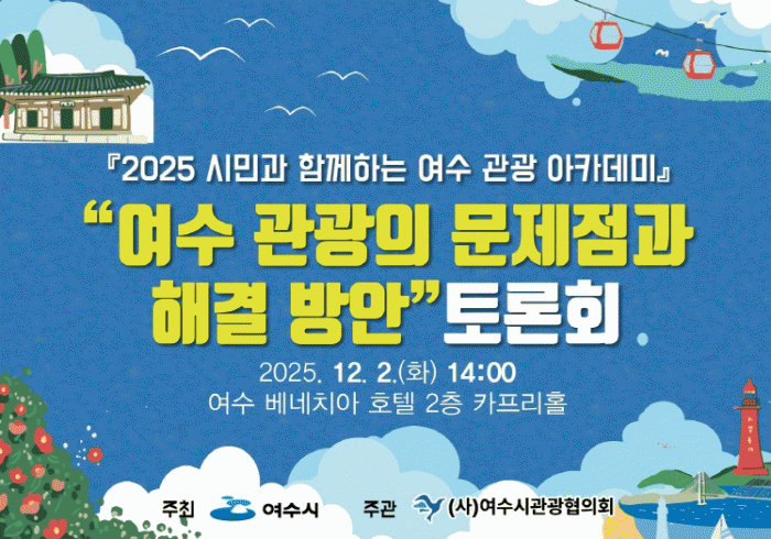 ¿©¼ö½Ã´Â ¿À´Â 12¿ù 2ÀÏ ¿ÀÈÄ 2½Ã ¿©¼ö º£³×Ä¡¾Æ È£ÅÚ¿¡¼­ ¡®¿©¼ö °ü±¤ÀÇ ¹®Á¦Á¡°ú ÇØ°á ¹æ¾È¡¯À» ÁÖÁ¦·Î Åä·Ðȸ¸¦ °³ÃÖÇÑ´Ù.