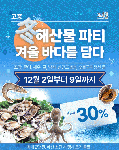À̹ø ±âȹÀüÀº °Ü¿ïö ¸À°ú ¿µ¾çÀÌ ÀýÁ¤¿¡ ´ÞÇÏ´Â °íÈï»ê ¼ö»ê¹°À» ÇÕ¸®ÀûÀÎ °¡°Ý¿¡ Á¦°øÇϱâ À§ÇØ ¸¶·ÃµÆ´Ù. ±âȹÀü ±â°£ ²¿¸·, ¹®¾î, »õ¿ì, ±¼, ³«Áö¸¦ ºñ·ÔÇØ ¹Ý°ÇÁ¶ »ý¼±°ú ½¡ºÒ±¸ÀÌ »ý¼± µî ´Ù¾çÇÑ °Ü¿ï Á¦Ã¶ ¼ö»ê¹°À» ÃÖ´ë 30% ÇÒÀÎµÈ °¡°ÝÀ¸·Î ¸¸³ªº¼ ¼ö ÀÖ´Ù.
