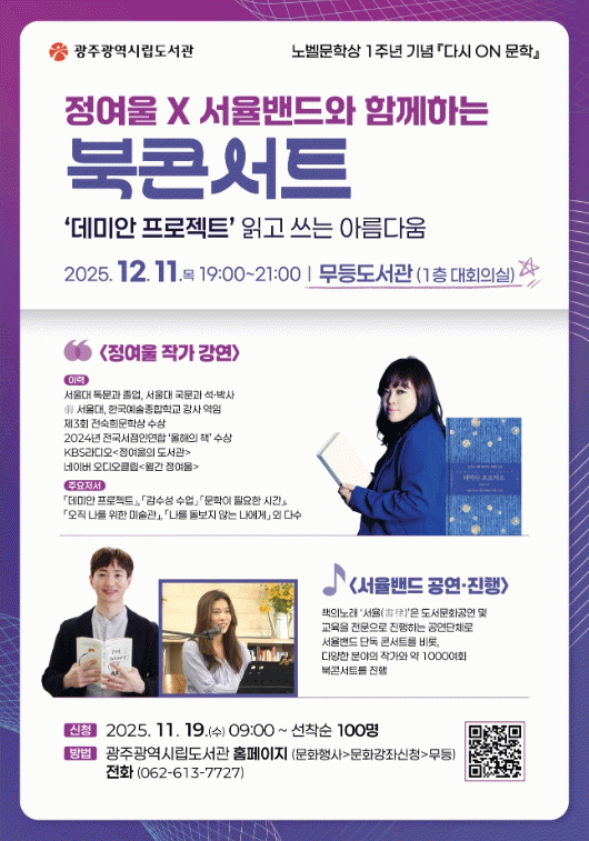 Á¤¿©¿ï ÀÛ°¡ÀÇ Ã¥¸¸³²(ºÏÅäÅ©)°ú ¼À²¹êµåÀÇ ¶óÀÌºê °ø¿¬ÀÌ ÇÔ²² ÁøÇàµÇ¸ç, ÇѰ ÀÛ°¡ÀÇ ÀÛǰÀ» »õ·Ó°Ô ÇØ¼®ÇÏ°í ±× ±íÀ̸¦ ÇÔ²² ´À²¸º¸´Â ½Ã°£À» Á¦°øÇÑ´Ù.