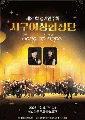 ¼±¸¿©¼ºÇÕâ´ÜÀº ¿À´Â 4ÀÏ ¿ÀÈÄ7½Ã ¼ºû¸¶·ç¹®È¿¹¼úȸ°ü¿¡¼ ¡®Song of Hope(Èñ¸ÁÀÇ ³ë·¡)¡¯¸¦ ÁÖÁ¦·Î Á¦21ȸ Á¤±â¿¬ÁÖȸ¸¦ °³ÃÖÇÑ´Ù.