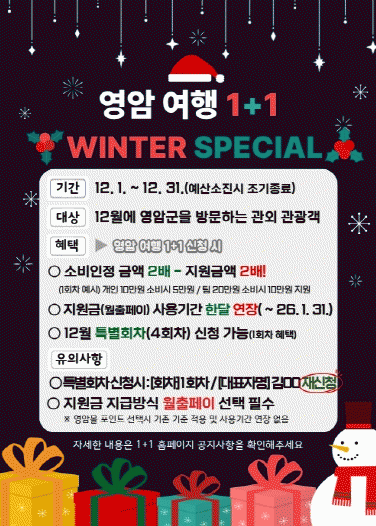 ¿µ¾Ï±ºÀÌ ¿¬¸» Áö¿ª °ü±¤ ¼ö¿ä °ßÀÎÀ» À§ÇØ 12¿ù ÇÑ ´Þ µ¿¾È ¡®¿µ¾Ï¿¡¼­ Áñ±â´Â ¼³»ê°¡»ê À̺¥Æ®¡¯·Î ¡®¿µ¾Ï¿©Çà 1+1¡¯ ÇýÅÃÀ» ´ëÆø ´Ã¸°´Ù.