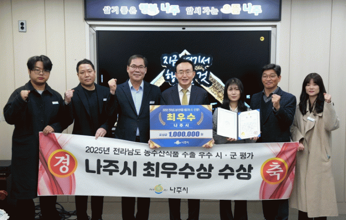 À±º´Å ³ªÁÖ½ÃÀåÀº ¡°Èûµç ¿©°Ç ¼Ó¿¡¼µµ °íǰÁú ³ó»ê¹° »ý»ê°ú À¯Åë¿¡ Èû½áÁֽгó¾÷ÀÎ, ¼öÃâ¾÷ü, ÇàÁ¤ÀÌ ÇÔ²² ¸¸µé¾î³½ °ªÁø °á½Ç¡±À̶ó¸ç ¡°¾ÕÀ¸·Îµµ ÇØ¿ÜÆÇ·Î ´Ù°¢È, ³ªÁÖ¹è ¼öÃâÀü¹®´ÜÁö¡¤°¡°ø»ê¾÷ À°¼º, ¼öÃâ Æ¯È ǰ¸ñ Á÷ºÒ±Ý È®´ë µîÀ» ÅëÇØ ±Û·Î¹ú °æÀï·ÂÀ» ´õ¿í °ÈÇϰڴ١±°í ¸»Çß´Ù.