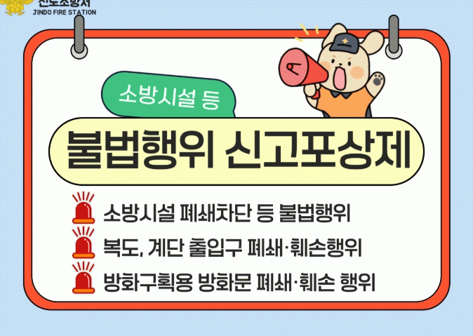 Áøµµ¼Ò¹æ¼­´Â È­Àç ¹ß»ý ½Ã ½Å¼ÓÇÑ ´ëÇǸ¦ À§ÇÑ Çdz­Åë·Î È®º¸¿Í È­Àç ¾ÈÀü°ü¸® °­È­¸¦ À§ÇØ, ºñ»ó±¸ Æó¼â³ª ¼Ò¹æ½Ã¼³ Â÷´Ü°ú °°Àº ºÒ¹ýÇàÀ§¿¡ ´ëÇÑ ½Å°íÆ÷»óÁ¦¸¦ ¿¬Áß ½ÃÇà ÁßÀ̶ó°í ¹àÇû´Ù.