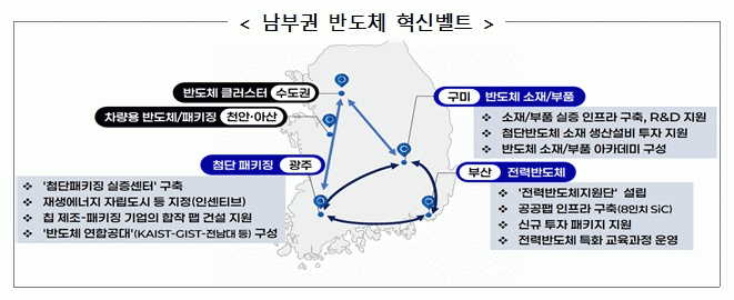 Á¤ºÎ´Â ¹ÝµµÃ¼ »ýŰèÀÇ ¼öµµ±Ç ÁýÁß ¿ÏÈ­¸¦ À§ÇØ ±¤ÁÖ-ºÎ»ê-±¸¹Ì¸¦ ÀÕ´Â ³²ºÎ±Ç ¹ÝµµÃ¼ Çõ½Åº§Æ®¸¦ ÃßÁøÇÑ´Ù. ÀÌ Áß ±¤ÁÖ´Â ¹ÝµµÃ¼ ÷´ÜÆÐŰ¡ ºÐ¾ßÀÇ ±¹°¡´ëÇ¥ °ÅÁ¡µµ½Ã·Î À°¼ºÇÑ´Ù.