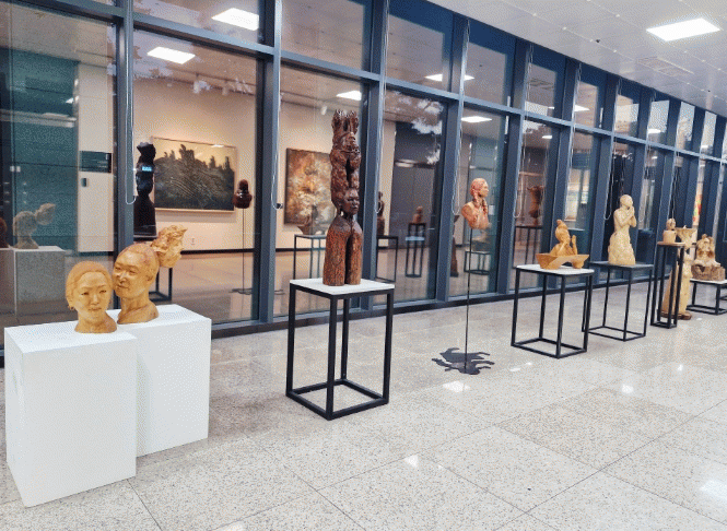 Àü½ÃÀå¿¡´Â ´ÀƼ³ª¹«, ÀºÇ೪¹«, °¡Á׳ª¹«, Ȱ¼®, ´ë¸®¼® µî ´Ù¾çÇÑ Àç·á¿¡ »ýÀÇ ÈçÀûÀ» ´ã¾Æ³½ ÀÛǰ 20¿© Á¡ÀÌ Àü½ÃµÈ´Ù.