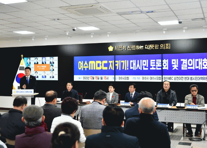 ¸ÕÀú ¿¸° 1ºÎ ´ë½Ã¹Î Åä·Ðȸ ¹× °áÀÇ´ëȸ¿¡¼´Â ¿©¼öMBC ¼øÃµ ÀÌÀü ¹Ý´ë Ȱµ¿ °æ°úº¸°í¿¡ À̾î, °ø¿µ¹æ¼ÛÀÇ ¿ªÇÒ°ú Áö¿ª¼º¿¡ ´ëÇÑ ½Ã¹Î ÀÚÀ¯Åä·ÐÀÌ ÁøÇàµÆÀ¸¸ç, ÀÌÈÄ Âü°¡ÀÚ Àü¿øÀÇ ¶æÀ» ´ãÀº ¡®¿©¼öMBC Áö۱⠰áÀǹ®¡¯À» ³¶µ¶µÆ´Ù.