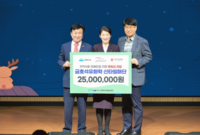 Àå°©Á¾ ±ÝÈ£¼®À¯ÈÇÐ ¿©¼ö°øÀåÀåÀº ¡°Áö¿ª»çȸ¿Í »ó»ýÇÏ´Â ±â¾÷À¸·Î¼ »êŸ½ä¸Å´Ü Ȱµ¿À» ºñ·ÔÇÑ ´Ù¾çÇÑ ³ª´® Ȱµ¿À» À̾î¿À°í ÀÖ´Ù¡±¸ç ¡°¾ÕÀ¸·Îµµ µµ¿òÀÌ ÇÊ¿äÇÑ ÀÌ¿ôµé¿¡°Ô ½ÇÁúÀûÀÎ µµ¿òÀÌ µÉ ¼ö ÀÖµµ·Ï »çȸ°øÇå Ȱµ¿À» Áö¼ÓÇØ ³ª°¡°Ú´Ù¡±°í ¸»Çß´Ù.