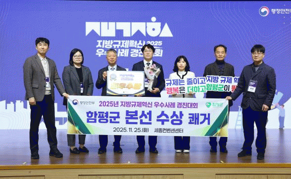 2025³â¿¡µµ Àü¶ó³²µµ ±ÔÁ¦Çõ½Å ¿ì¼ö ½Ã±º Æò°¡¿¡¼ Àå·Á»óÀ» ¼ö»óÇßÀ¸¸ç, ÇϹݱâ ÇàÁ¤¾ÈÀüºÎ ÁÖ°ü ¡®Áö¹æ±ÔÁ¦Çõ½Å ¿ì¼ö»ç·Ê °æÁø´ëȸ¡¯¿¡¼´Â ³ó°ø´ÜÁö °ÇÆóÀ² ¿ÏÈ »ç·Ê·Î Àü±¹ ÃÖ¿ì¼ö»óÀ» ¼ö»óÇß´Ù.