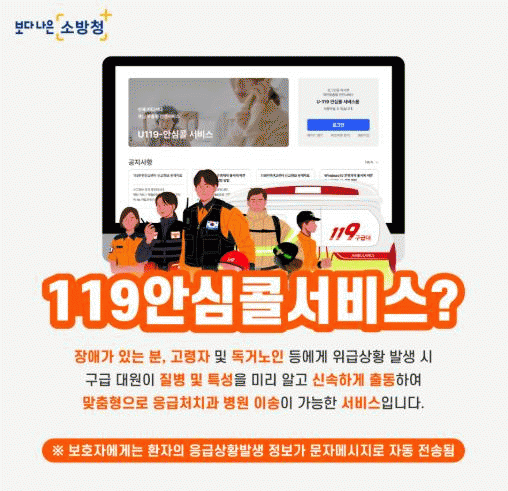 119¾È½ÉÄÝ ¼­ºñ½º´Â ±¹¹ÎÀÌ »çÀü¿¡ ÀÚ½ÅÀÇ ÀüÈ­¹øÈ£¿Í Áúº´ Á¤º¸, º¸È£ÀÚ ¿¬¶ôó, ÁÖ¼Ò µîÀ» µî·ÏÇØµÎ¸é 119½Å°í ½Ã ÇØ´ç Á¤º¸°¡ ÀÚµ¿À¸·Î Àü¼ÛµÇ¾î º¸´Ù ºü¸£°í ¸ÂÃãÇü ´ëÀÀÀÌ °¡´ÉÇϵµ·Ï Áö¿øÇÏ´Â Á¦µµÀÌ´Ù.