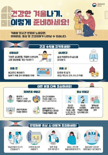 Àü³²µµ´Â ÇÑ·©Áúȯ ¿¹¹æÀ» À§ÇØ ¿ÜÃâ Àü ±â¿ÂÀ» È®ÀÎÇϰí, ³»º¹À̳ª ¾ãÀº ¿ÊÀ» ¿©·¯ °ã Âø¿ëÇØ ü¿ÂÀ» À¯ÁöÇÒ °ÍÀ» ±Ç°íÇß´Ù.