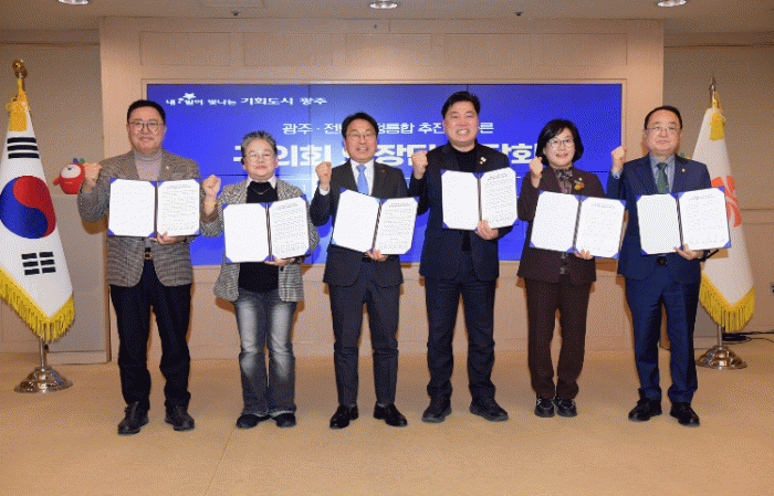 °±âÁ¤ ½ÃÀåÀº ¡°±¤ÁÖ¡¤Àü³² ÅëÇÕ ±¤¿ªÁö¹æÁ¤ºÎ Ãâ¹üÀº ¿ª»çÀû »ç¸íÀÌÀÚ ¹Ì·¡ ¼¼´ë¸¦ À§ÇÑ °á´ÜÀÓÀ» ±íÀÌ °ø°¨ÇØÁּż °¨»çÇÏ´Ù¡±¸ç ¡°´õ ºÎ°ÇÑ ±¤ÁÖ¡¤Àü³²À» À§ÇØ ±¤ÁÖ½Ã¿Í 5°³ ÀÚÄ¡±¸ÀÇȸ°¡ ÇÔ²² ±¤ÁÖ¡¤Àü³² ´ëÅëÇÕÀ» ¹Ýµå½Ã ¼º°ø½ÃŰ°Ú´Ù¡±°í ¹àÇû´Ù.