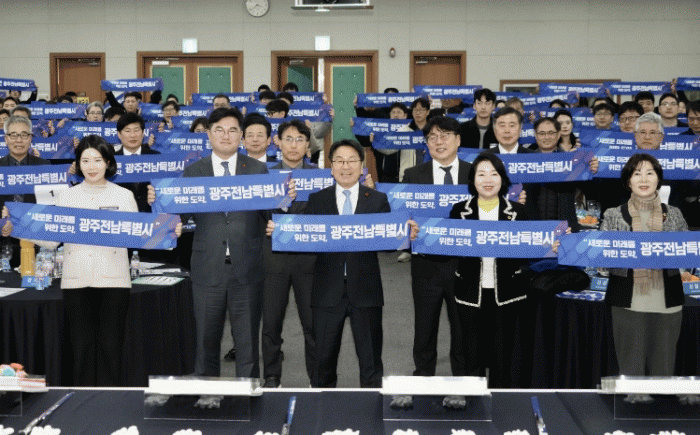°±âÁ¤ ±¤ÁÖ½ÃÀåÀº ¡°¿ì¸®ÀÇ »ê¾÷ÀÌ ³Ð¾îÁö°í û³âµéÀÇ ÀÏÀÚ¸®¿Í ±âȸ°¡ »ý±æ ¼ö ÀÖµµ·Ï Áö»êÇп¬ °¢ ÁÖü°¡ °¡Áø ¿ª·®À» Çϳª·Î Áý°áÇØ »õ·Î¿î »ê¾÷Áöµµ¸¦ ±×¸®°Ú´Ù¡±¸ç ¡°ÀΰøÁö´É(AI)°ú ¿¡³ÊÁö, ¹ÝµµÃ¼¿Í ¹®È·Î Ȱ¦ ²ÉÇÇ´Â ºÎ°ÇÑ ±¤ÁÖÀü³²ÀÇ ¿ø³âÀÌ µÉ ¼ö ÀÖµµ·Ï ¸ðµÎ°¡ ÈûÀ» ¸ð¾Æ »õ·Î¿î ±æÀ» ¿¾î°¡ÀÚ¡±°í ´çºÎÇß´Ù.