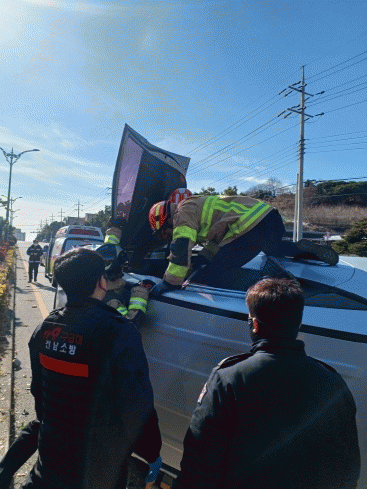 À̳¯ ¿¬µî119±¸Á¶´ë´Â ±¸Á¶Àåºñ ¼ö¸®¸¦ À§ÇØ ¿©Ãµ¿ª Àα٠¼ö¸®Á¡À» ¹æ¹®ÇÏ´ø Áß, Â÷·® Àüµµ »ç°í ÇöÀåÀ» ¸ñ°ÝÇß´Ù. ±¸Á¶´ë¿øµéÀº Áï½Ã Â÷·®À» Á¤Â÷Çϰí ÇöÀåÀ¸·Î Ãâµ¿ÇØ »ç°í »óȲÀ» ÆÄ¾ÇÇÑ µÚ, ±¸Á¶´ë»óÀÚ¿¡ ´ëÇÑ ÀÀ±ÞÁ¶Ä¡¸¦ ½Ç½ÃÇÏ¸ç ±¸Á¶È°µ¿¿¡ ³ª¼¹´Ù.
