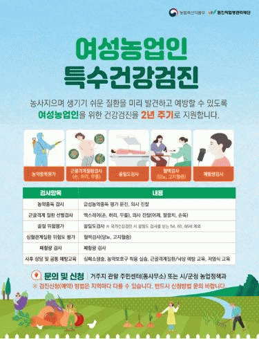 2026³â ¿©¼º³ó¾÷ÀΠƯ¼ö°Ç°°ËÁø Áö¿øÀ» Èñ¸ÁÇÏ´Â ´ë»óÀÚ´Â ÁÖ¼ÒÁö À¾¡¤¸é¡¤µ¿»ç¹«¼Ò »ê¾÷ÆÀÀ» ¹æ¹®ÇØ ½ÅûÇÏ¸é µÈ´Ù.