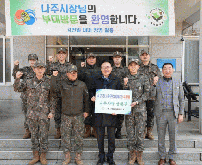6ÀÏ ³ªÁֽÿ¡ µû¸£¸é ³ªÁֽà ÅëÇÕ¹æÀ§ÇùÀÇȸ ÀÇÀåÀÎ À±º´Å ½ÃÀåÀº ¼³ ¸íÀýÀ» ¾ÕµÐ Áö³ 5ÀÏ À°±º Á¦8332ºÎ´ë 3´ë´ë¿Í °ø±º Á¦6855ºÎ´ë µî °ü³» ±ººÎ´ë 2°³¼Ò¸¦ ¹æ¹®ÇØ À庴µé¿¡°Ô ¸íÀý À§¹®Ç°À¸·Î ³ªÁÖ»ç¶û»óǰ±ÇÀ» Àü´ÞÇß´Ù.