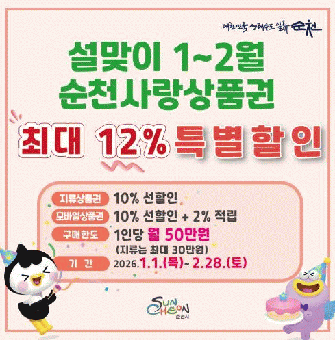 ½Ã¿¡ µû¸£¸é 2026³â 1¿ùºÎÅÍ ÁøÇà ÁßÀÎ ¼øÃµ»ç¶û»óǰ±Ç ÇÒÀÎÇà»ç¿¡ µû¶ó Áö·ùÇüÀº 10% ¼±ÇÒÀÎ, ¸ð¹ÙÀÏÇüÀº 10% ¼±ÇÒÀο¡ »ç¿ë±Ý¾×ÀÇ 2%¸¦ ÈÄij½Ã¹éÀ¸·Î Á¦°øÇØ ÃÑ 12% ÇýÅÃÀ» ¹ÞÀ» ¼ö ÀÖ´Ù.