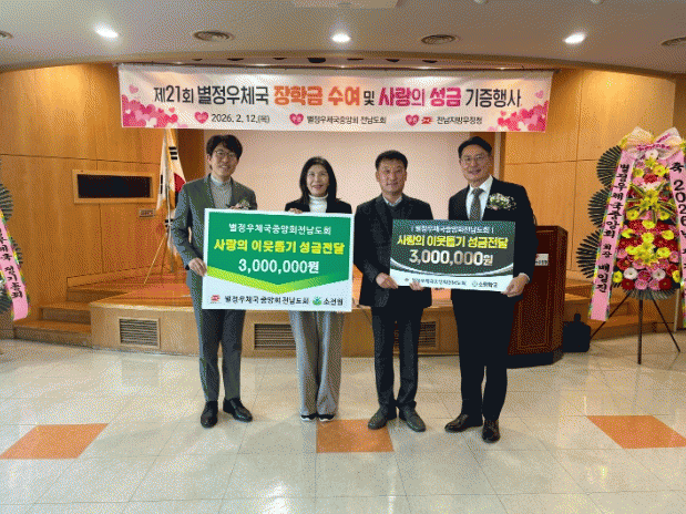 À̹ø Á¦21ȸ¸¦ Æ÷ÇÔÇØ Áö³ 21³â°£ 'ÀåÇÐ±Ý ¹× »ç¶ûÀÇ ¼º±Ý Àü´Þ½Ä'Àº Àü³²Áö¹æ¿ìÁ¤Ã» ¼Ò¼Ó ±¤ÁÖ¡¤Àü³²Áö¿ª 115°³ º°Á¤¿ìü±¹ 500¿© ¸í Á÷¿øµéÀÌ ¸Å³â ¸ð±ÝÇÑ ¼º±ÝÀ¸·Î ¿î¿µµÆ´Ù. Áö±Ý±îÁö ÀåÇбÝÀº 624¸í¿¡°Ô 2¾ï 4,370¸¸ ¿ø, »ç¶ûÀÇ ½Ò 1,230Æ÷(20§¸) 7,400¸¸ ¿ø, »ç¶ûÀÇ ¼º±Ý 7,600¸¸ ¿ø µî ÃÑ 3¾ï 9,370¸¸ ¿øÀ» ±âºÎÇϸç Áö¿ª»çȸ¿¡ ÈûÀ» º¸ÅÉ´Ù.