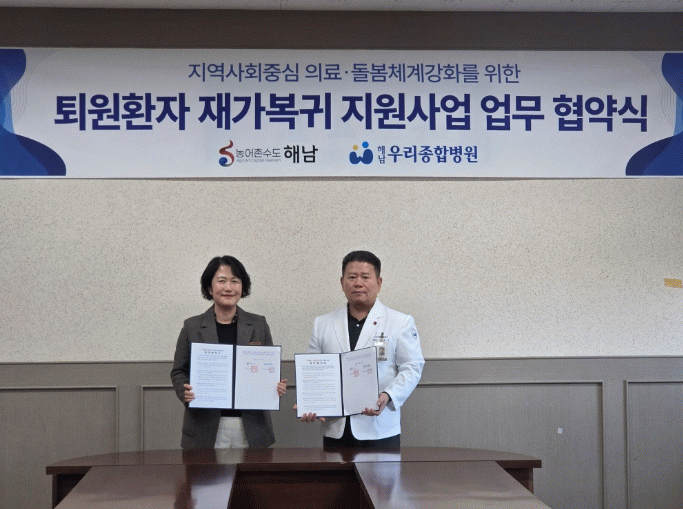ÇØ³²±º°ú ÇØ³²Á¾ÇÕº´¿ø(¿øÀå ±èµ¿±¹), ÇØ³²¿ì¸®Á¾ÇÕº´¿ø(¿øÀå ±è¿Á¹Î)Àº Áö³­ 6ÀÏ¡®Åð¿ø È¯ÀÚ Àç°¡ º¹±Í Áö¿øÀ» À§ÇÑ ¾÷¹« Çù¾à¡¯À» ü°áÇß´Ù. À̹ø Çù¾àÀº Àü¹® ÀÇ·á »çȸº¹Áö»ç°¡ »óÁÖÇÏ´Â Áö¿ª ÀÇ·á±â°ü°ú Çù·ÂÇØ Åð¿ø Á÷ÈÄ ¹ß»ýÇÒ ¼ö Àִ¡®µ¹º½ °ø¹é¡¯À» ¸Þ¿ì±â À§ÇØ ¸¶·ÃµÆ´Ù.