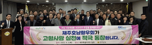 À̹ø ±âºÎ´Â ¼³À» ¾ÕµÎ°í °íÇâ¿¡ ´ëÇÑ ¾ÖÁ¤°ú Áö¿ª¹ßÀü¿¡ ´ëÇÑ ¿°¿øÀ» ´ã¾Æ ȸ¿øµéÀÇ ¶æÀ» ¸ð¾Æ ¸¶·ÃµÆ´Ù. Á¦ÁÖ¿¡ °ÅÁÖÇϴ ȣ³² Ãâ½Å Çâ¿ìµéÀº Áö¿ª»çȸ¿¡¼ Ȱ¹ßÇÑ È°µ¿À» À̾î¿À¸é¼µµ, °íÇâ ¹ßÀüÀ» À§ÇÑ Áö¿ø°ú ³ª´®À» ²ÙÁØÈ÷ ½ÇõÇϰí ÀÖ´Ù.