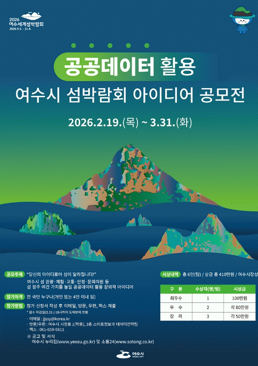 À̹ø °ø¸ðÀüÀº ½Ã¹ÎÀÌ Ã¼°¨ÇÒ ¼ö ÀÖ´Â ¼¶ °ü±¤¡¤Ã¼Çè ÄÜÅÙÃ÷¿Í Á¤ÁÖ ¿©°Ç °³¼± ¹æ¾ÈÀ» ¸ð»öÇϱâ À§ÇØ ¸¶·ÃµÆ´Ù. °ø¸ð ±â°£Àº 2¿ù 19ÀϺÎÅÍ 3¿ù 31ÀϱîÁöÀ̸ç, Àü ±¹¹Î ´©±¸³ª Âü¿©ÇÒ ¼ö ÀÖ´Ù. °ø¸ð ÁÖÁ¦´Â ¡®´ç½ÅÀÇ ¾ÆÀ̵ð¾î·Î ¼¶ÀÌ ´Þ¶óÁý´Ï´Ù!¡¯ÀÌ´Ù.