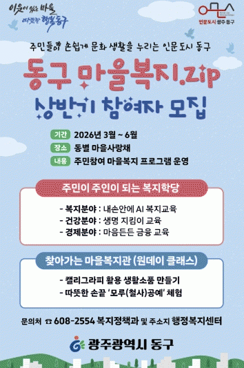 ±¤ÁÖ µ¿±¸´Â ÁֹΠ´©±¸³ª ÀÏ»ó ¼Ó¿¡¼­ º¹Áö¸¦ ¹è¿ì°í Âü¿©ÇÒ ¼ö ÀÖ´Â ¡®µ¿±¸ ¸¶À»º¹Áö.ZIP¡¯ »ç¾÷À» ¿À´Â 3¿ùºÎÅÍ º»°Ý ÃßÁøÇÑ´Ù°í ¹àÇû´Ù.