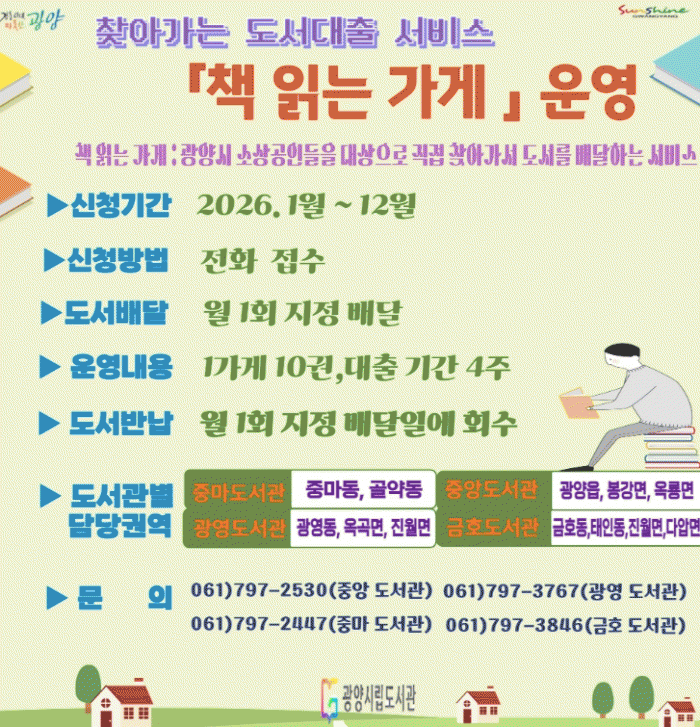 ±¤¾ç½Ã °ü°èÀÚ´Â ¡°Ã¥ Àд °¡°Ô´Â µµ¼°üÀÌ Áö¿ª °÷°÷À¸·Î ÇÑ °ÉÀ½ ´õ ´Ù°¡°¡±â À§ÇÑ »ýȰ ¹ÐÂøÇü µ¶¼ ¼ºñ½º¡±¶ó¸ç ¡°¾ÕÀ¸·Îµµ Àϻ󿡼 Ã¥À» ½±°Ô ¸¸³¯ ¼ö ÀÖµµ·Ï ´Ù¾çÇÑ µ¶¼¹®È ÇÁ·Î±×·¥À» Áö¼Ó È®´ëÇØ ³ª°¡°Ú´Ù¡±°í ¹àÇû´Ù.