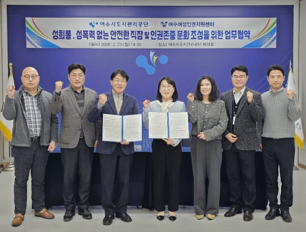 ¿©¼ö½Ãµµ½Ã°ü¸®°ø´ÜÀº ¼ºÆòµîÇÑ Á¶Á÷¹®È­ Á¤Âø°ú ÀαÇģȭÀû °ø°ø½Ã¼³ Á¶¼ºÀ» À§ÇØ ¿©¼ö¿©¼ºÀαÇÁö¿ø¼¾ÅÍ(¼¾ÅÍÀå À±Àº¹Ì), ¿©¼ö½Ã ¿©¼ºÄ£È­µµ½Ã ½Ã¹ÎÂü¿©´Ü À§ÇÏ´ÙWE_ÇÏ´Ù(´ÜÀå ÀÌÇö¿µ)¿Í ÀÕ´Þ¾Æ ¾÷¹«Çù¾àÀ» ü°áÇß´Ù°í 27ÀÏ ¹àÇû´Ù.