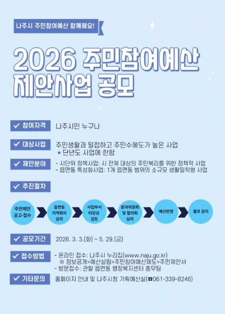 ³ªÁÖ½Ã, 2026³â ÁÖ¹ÎÂü¿©¿¹»ê Á¦¾È»ç¾÷ °ø¸ð ½Ç½Ã
