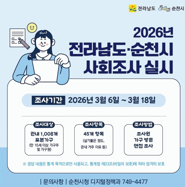 ¼øÃµ½Ã´Â ½Ã¹ÎµéÀÇ »îÀÇ ÁúÀû ¼öÁذú »çȸ »óÅÂÀÇ º¯È¸¦ ÆÄ¾ÇÇϱâ À§ÇØ ¿À´Â 6ÀϺÎÅÍ 13Àϰ£ 2026³â »çȸÁ¶»ç¸¦ ½Ç½ÃÇÑ´Ù°í ¹àÇû´Ù.